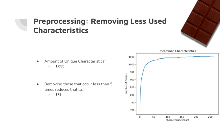 The data was used to train five different machine learning algorithms to attempt to find which aspects of chocolate effect the rating most.