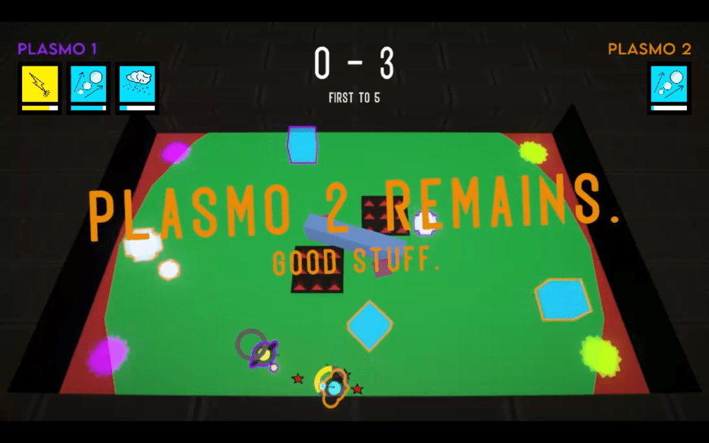 Multiplayer arena battler in which two Plasmos (players) must choose abilities, and use them to defeat their opponent. After each round, the loser gains a new ability, while the winner gains nothing but pride. The first to win 5 times claims victory.